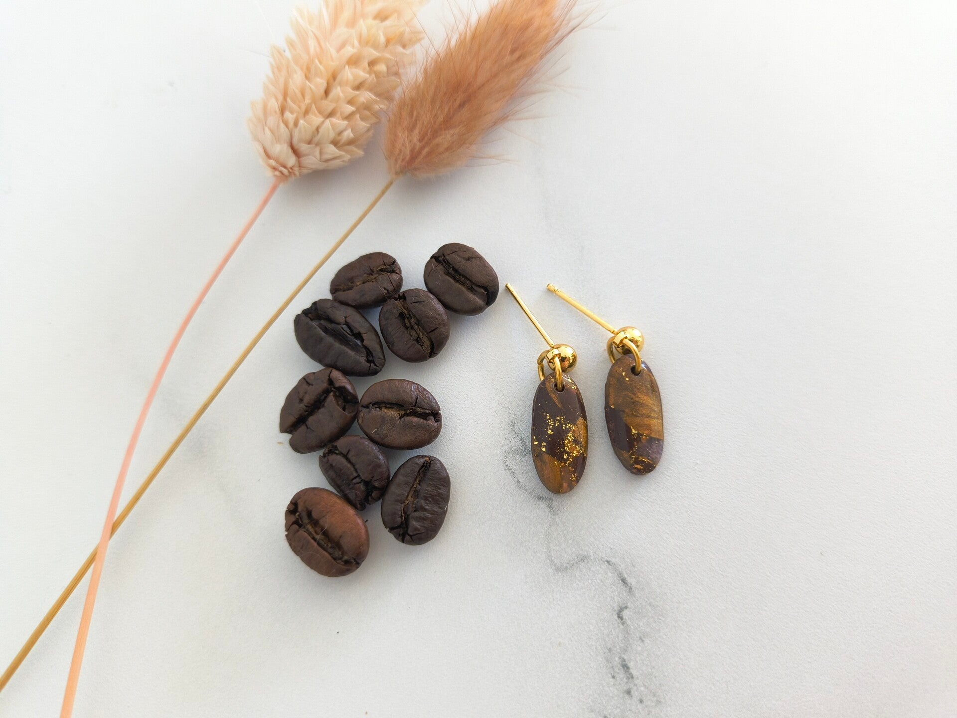 Warme bruine tinten met gouden accenten. Afgewerkt met een glanzende harslaag. Op en top feestelijk!